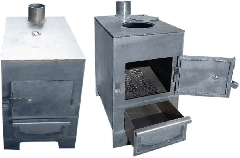 Піч-буржуйка - компактна економна твердопаливна колосникова піч, що працює на дровах або паливних брикетах. Призначена для обігріву не побутових приміщень площею до 60 м2 та обладнана варильною поверхнею. Буржуйка виготовлена з якісної сталі 4 мм, що сприяє утриманню тепла та швидкому прогріву приміщення. Завдяки спалюванню палива на колосникових гратах піч-буржуйка має гарну тягу та максимально ефективно використовує дрова та паливні брикети.